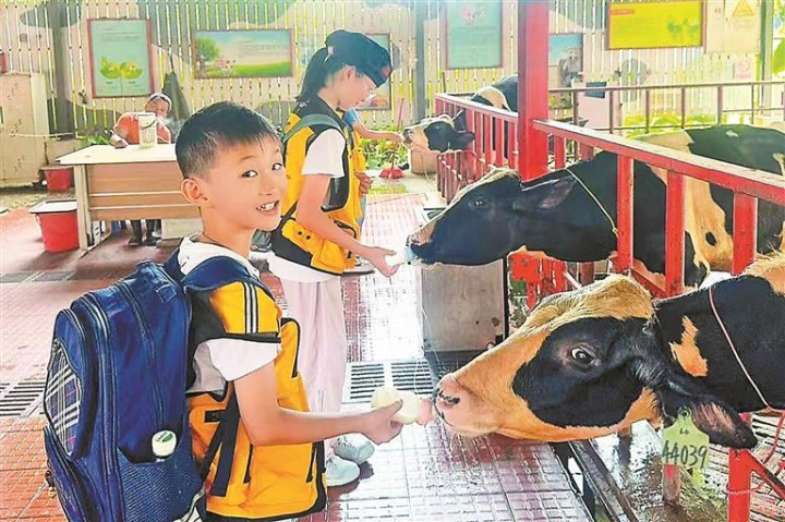 在萌宠乐园里,星主播们和小牛、羊驼、兔兔等萌宠亲密接触,感受毛茸茸的生命力!“小牛的舌头软乎乎的,舔得手心直痒痒!”星主播们一边投喂,一边兴奋地叽叽喳喳。走进亲牛园,他们不仅亲眼见识了传统手工挤奶的巧技,还围观了现代化机械的高效作业,在古今对比中触摸农耕文明的脉动。