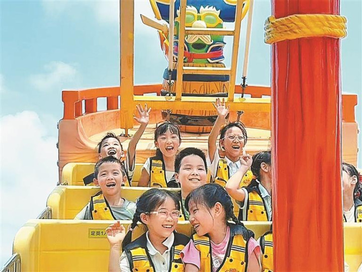 在光明农场大观园的七彩乐园里,孩子们开启了一场充满惊喜的成长之旅。惊险刺激的海盗船让“小探险家”们既紧张又兴奋,“感觉要飞起来啦”的欢呼声中,勇气在孩子们心底悄然滋长;梦幻的旋转木马和自由翱翔的自控飞机,让童真的想象力尽情绽放。彩虹滑道上,化身“小火箭”的孩子们从七彩赛道飞驰而下,在“全程没闭眼”的自豪宣言中完成自我挑战;卡丁车赛场成为生动的课堂,小小赛车手们用“油门承载激情、刹车守护生命”的感悟,诠释规则与友谊的真谛。在无动力乐园,彩虹蹦蹦云的欢快弹跳和魔网城堡的协作攀爬,让简单的游乐设施化作培养团队精神的快乐天地。这场结合锤炼勇气、启迪智慧与播报的实践,让孩子们充分释放天性,使其在愉悦氛围中获得播报技能的锻炼。